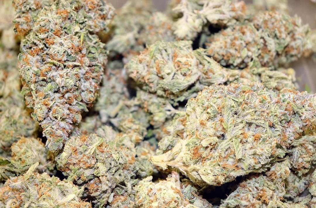 unterstützt von einem weichen Keksgeschmack. Erwarten Sie lila Knospen, die einen Hauch von Dunkelgrün mit orangefarbenen Haaren haben.